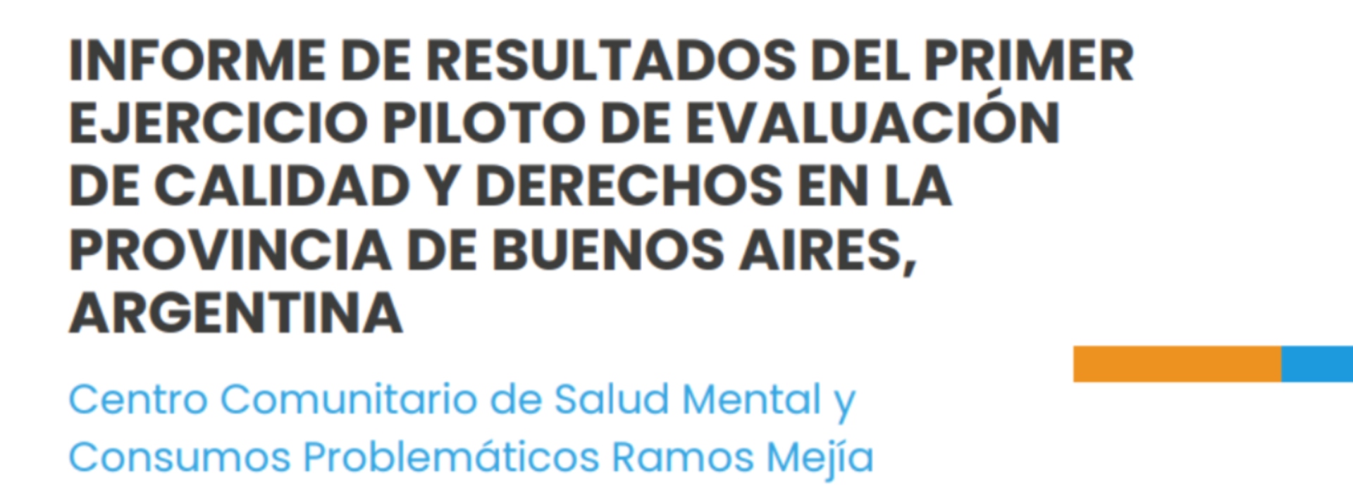 La Defensoría del Pueblo de la provincia de Buenos Aires, a través del Órgano de Revisión Local de Salud Mental (ORL) —que preside el organismo— participó en la elaboración y presentación del "Informe de Resultados del Primer Ejercicio Piloto de Evaluación de Calidad y Derechos en servicios de salud mental".